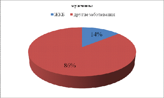 ЖКБ у обследуемых мужчин среди всех заболеваний гепатобилиарной системы