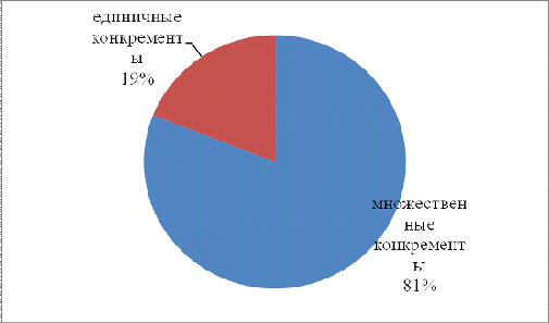 диагностированных единичных и множественных конкрементов.