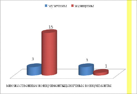 количество женщин с множественными конкрементами преобладает над количеством мужчин;