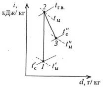 ) В теоретической сушилке, т.е. без потерь тепла в окружающую среду, процесс сушилки будет происходить при постоянной энтальпии, тогда