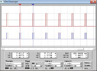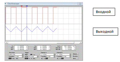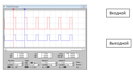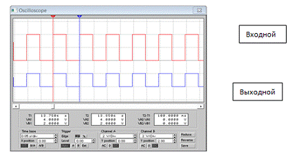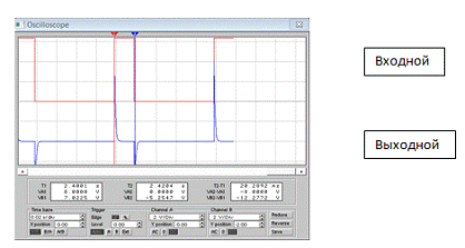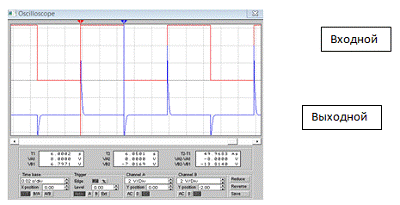 Фиксируем форму входного и выходного сигналов с экрана осциллографа, измерив при этом период входной и выходной импульсных последовательностей, так как это указано на рисунке 1.2.
