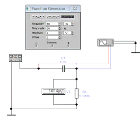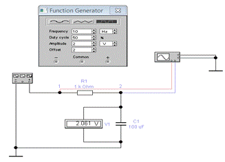 цепи и подключим к схеме измерительные приборы (функциональный генератор