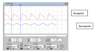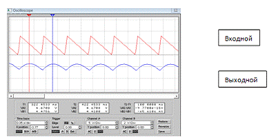 осциллографа, так как это показано на рисунке 3.4. Рис. 3.4. Осциллограммы входного и выходного