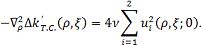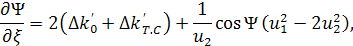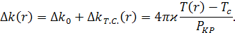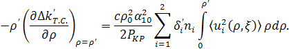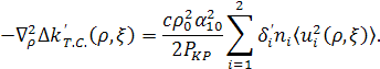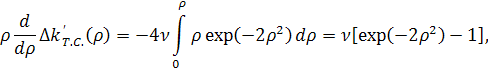 Обратим внимание на то, что уравнение теплопроводности «расцепилось» с укороченными уравнениями. Физически это связанно с тем, что тепловая картина определяется поглощением суммарной средней мощности взаимодействующих вон, которая в данном случае, при v1=v2, практически постоянна в любом сечении ξ кристалла. Из (49) видно, что тепловая расстройка ∆k’т.с., есть функция только радиальной переменной ρ и постоянна по длине кристалла[6].