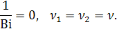 Это есть случай отсутствия дисперсии параметров теплового самовоздействия при идеальном тепловом контакте кристалла с термостатом. Условие v1=v2 означает, что потери на поглощение излучения в кристалле, для волн основной частоты и второй гармоники. При наличии идеального теплового контакта имеем: