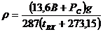 Плотность воздуха на радиусе rφmρт, кг/м3,