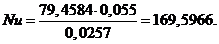 Число Нуссельта Nu вычисляем