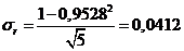 определяемый по таблице 4 [1] в зависимости от величины выборки (числа опытов);