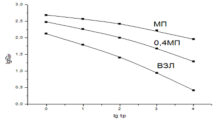 от lgσ определяем время до разрушения tp на этих режимах.