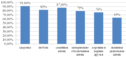 (82%), счастливая семейная жизнь (87%), активная деятельная жизнь (63%),