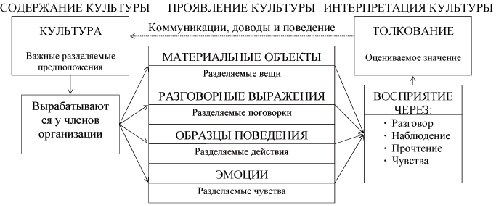 Культура организации представляет собой сложную композицию важных предположений, причем часто не поддающихся формулированию, бездоказательно принимаемых и разделяемых членами коллектива. Часто организационная культура трактуется как принимаемые большей частью компании философия и идеология управления, предположения, ценностные ориентации, верования, ожидания, распоряжения и нормы, лежащие в основе отношений и взаимодействий как внутри организации, так и за ее пределами.
