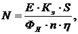 количество N используемых светильников, полагая, что каждый светильник содержит