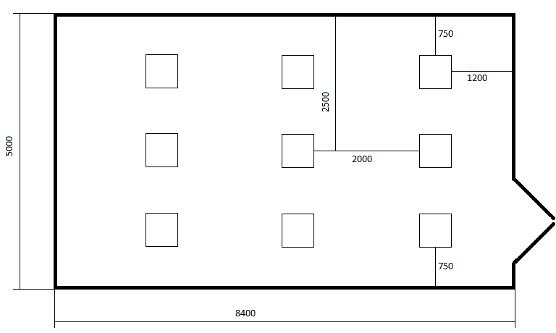 Помещение имеет следующие параметры: длина, А = 8,4 м., ширина, В = 5 м. Полная высота Н = 2,75 м. В качестве источников света предлагается использовать светильники ARS/R 418.