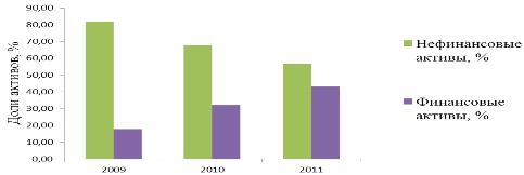 По данным таблицы 1.4 видно, что доля нефинансовых активов с каждым годом
