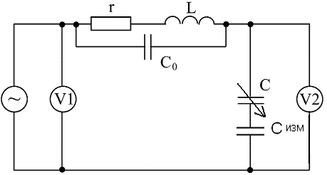 В контур вводится напряжение, снимаемое с генератора. Катушку индуктивности можно рассматривать как контур, состоящий из L, r и С0, где