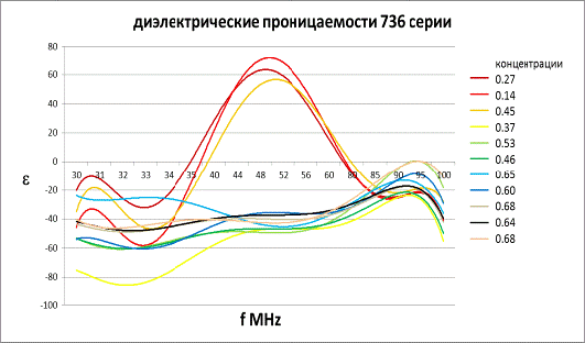 Эти исследования проведены в интервале частот 30-110 МГц и концентраций
