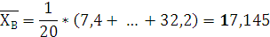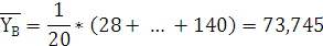 Найдем выборочные средние для X и Y по формуле (1):