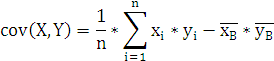 Найдем выборочную ковариацию для переменных X и Y по формуле(5):