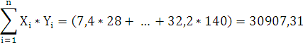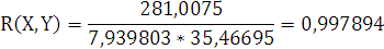 Найдем выборочный коэффициент корреляции для переменных X и Y по формуле (6):