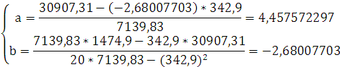 Для нахождения коэффициентов a и b методом наименьших