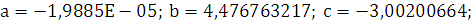 параметров a, b и c методом наименьших