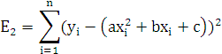 парабола наименее уклоняется от точек (Xi, Yi). Сделаем это методом наименьших