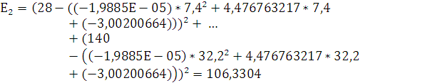 Эти формулы используются для линейной и параболической регрессий, затем сравнивают полученные результаты и находят наименьшее среди полученных результатов. Та регрессия, у которой будут наименьшие оценки, более точно отражает распределение точек на диаграмме рассеивания.
