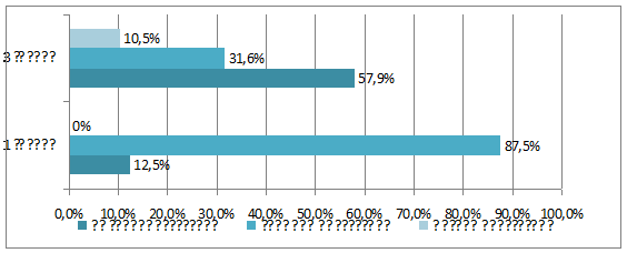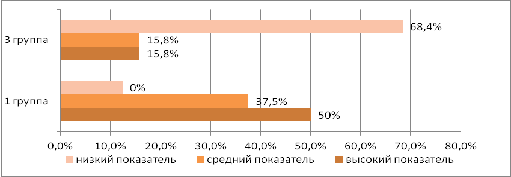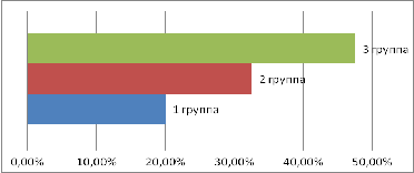 В первую группу вошло 19 педагогов, что составляет 47,5%, во вторую группу 13 человек, что составляет 32,5%, и в третью группу 8 человек, что составляет 20%.