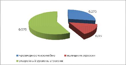 человек (27,5%) набрали по 35 и менее баллов, данный контингент характеризуется чрезмерным миролюбием, что говорит о недостаточной уверенности в собственных силах и возможностях.