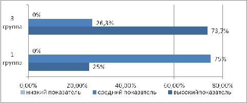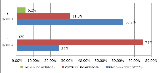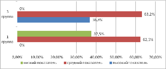 между результатами первой и третьей групп, использовалась процедура вычисления