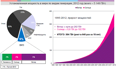 энергии (ВИЭ) на состояние 2012 г.[14] Как видно на графике, лидирующее