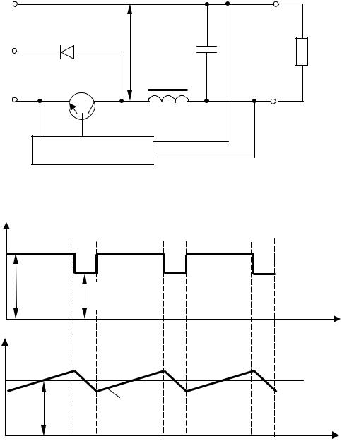 Для стабилизатора (рис.3.12 и 3.14) пульсации выходного напряжения пропорциональны току нагрузки и не зависят от индуктивности фильтра и могут быть уменьшены только за счет увеличения емкости конденсатора фильтра: