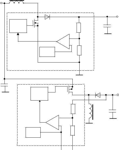 Отечественной и зарубежной промышленностью выпускается значительное число типономиналов ИМС, предназначенных для построения импульсных ИП. Как уже отмечалось ранее, применение ИМС значительно упрощает задачу построения источников питания РЭА. Так, например, понижающий импульсный стабилизатор (рис.3.10) может быть достаточно просто реализован на микросхеме МАХ638 фирмы Maxim (рис.3.18).