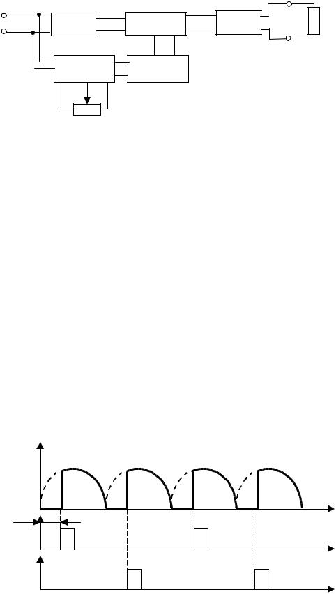 Очевидно, что, изменяя во времени момент открывания тиристоров VD1 и VD2 относительно момента прохождения питающего напряжения через свое нулевое значение, можно осуществлять регулирование эффективного значения напряжения на нагрузке. Частным случаем такого регулирования является стабилизация выходного напряжения, когда его значе-