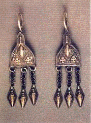 Серьги, которые носят многие казахские женщины, имеют форму конуса, и носятся с заостренным концом вниз (рисунок 2).