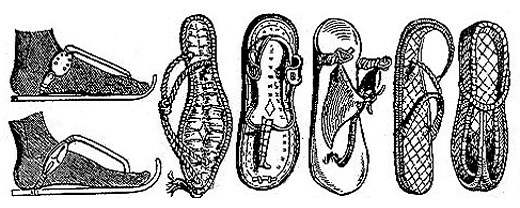 кверху подошвой и двумя-тремя тонкими ремешками. На подошвах изображались