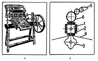 шрифтом 2. Давление осуществлялось фигурным печатным цилиндром 3. При этом было