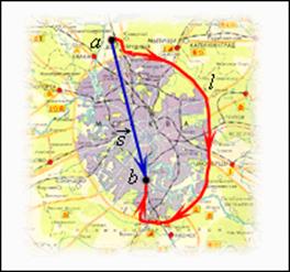 траектории модуль вектора перемещения всегда меньше пройденного пути (рис.2).