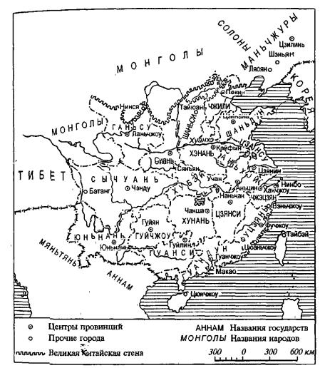 скохозяйственных земель. К концу XVI в. по сравнению с начальным периодом правления династии количество пахотной земли, приходившееся на душу населения, сократилось почти вдвое. Несмотря на это, усиливаются налоговые притязания властей, связанные с необходимостью содержания государственного аппарата, а также финансирования военных действий. Накануне падения династии одна только военная часть бюджета составляла примерно 20 млн лянов серебра, в то время как в начале ее правления весь государственный бюджет насчитывал 2 млн. Показателем кризиса, как всегда, были народные выступления против властей, отмеченные с начала XVI в., а также политическая борьба, развернувшаяся при императорском дворе.