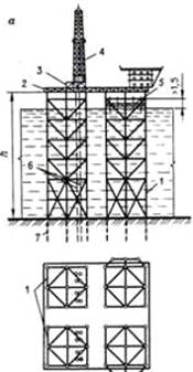 причально-посадочное устройство; 6 - водоотделяющая колонна (обсадная); 7 -