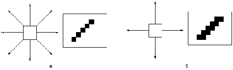 ) Результат - восьмисвязная линия. Соседние пиксели линии могут находится в одном из восьми возможных (см. рис. 5а) положениях
