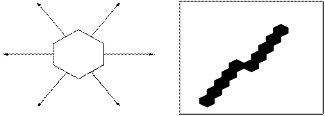 В гексагональном растре линии шестисвязные (см. рис.