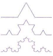 Берем отрезок и среднюю его треть переламываем под углом 60 градусов. Затем повторяем эту операцию с каждой из частей получившейся ломаной - и так до бесконечности. В результате мы получим простейший фрактал - триадную кривую, которую в 1904 году открыла математик Хельга фон Кох.