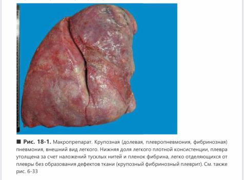 Крупозна пневмонія (4-6 день хвороби) Стадія сірого спечінкування/опечінкування