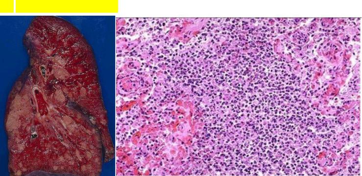 В альвеолах і бронхіолах ексудат з нейтроф., що |
