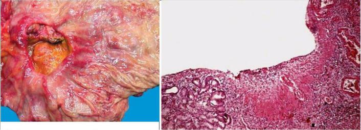 Етіологія: хронічні пептичні виразки, вплив канцерогенів Ускладнення: метастазування і вростання раку в сусідні органи і тканини, вторинні некротичні і запальні зміни пухлини