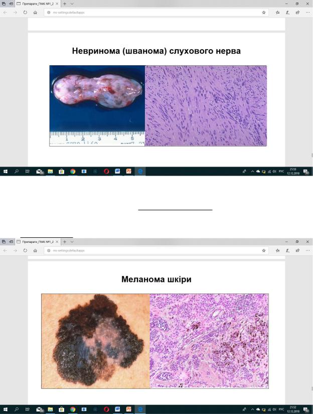 Мік.: клітинний атипізм, наявні веретенопод. поліморфні клітини, цитоплазма містить пігмент коричневого кольору - меланін