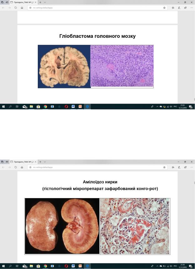 Мік.: клубочки та пірамідки - повністю замінені амілоїдом, навколо канальців – гомогенна речовина; амілоїд утвор. в стінці судин; розв. амілоїдне зморщ. нирок.