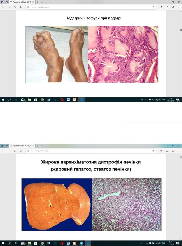 Жирова паренхіматозна дистофія печінки «гусяча печінка» Мак.: орган збільшений,щільний, форма не змінена,з гладкою, блискучою жовтою поверхнею