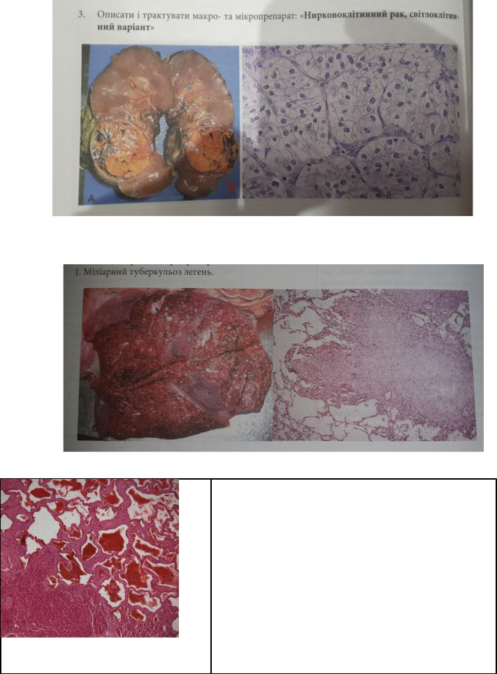 Макро: легеня малоповітряна, під плеврою і на розрізі видно багато дифузно розміщених вогнищ (горбики) сірого кольору та щільної консистенції, діаметром - 0,1-0,2 см.